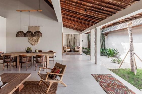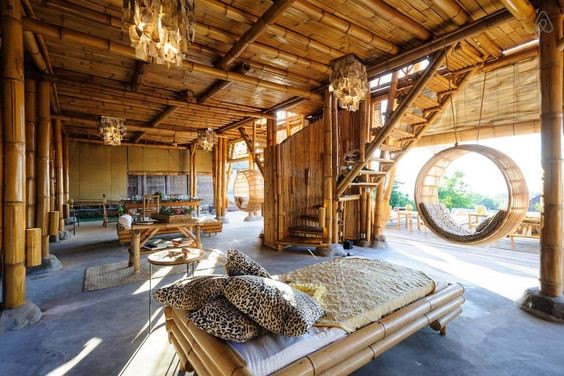 Đây là điều cực kỳ quan trọng trong việc thiết kế, thi công nội thất Farmstay. Đa số các khu farmstay hiện nay đang có những thiết kế tác động quá thô bạo vào hiện trạng tự nhiên. Họ sử dụng các nguyên liệu không thân thiện với môi trường như bê tông, xi măng, sắt, thép. Nhưng trên thực tế, du khách chỉ có ấn tượng với những không gian gần gũi với thiên nhiên. Chính vì vậy, các nguyên vật liệu tự nhiên, thân thiện với môi trường nên được ưu tiên sử dụng. Chúng ta có thể sử dụng các sản phẩm từ: tre, nứa, đá, gỗ, lá cây, cỏ,…Những vật liệu này sẽ tạo không gian mộc mạc. Từ đó, khách hàng sẽ cảm nhận được cảm giác thư thái, được hòa mình vào thiên nhiên.