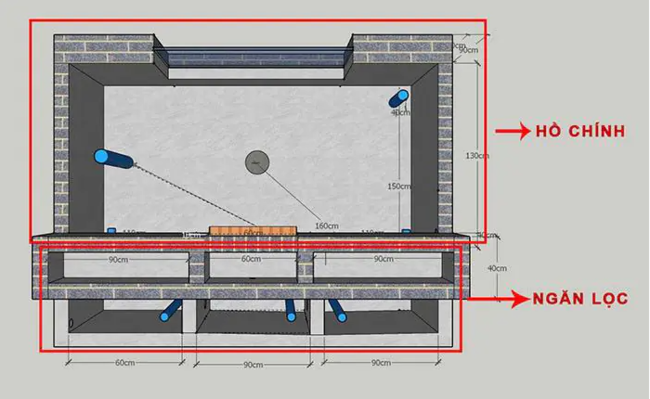 Bản vẽ cần thể hiện chi tiết kích thước, diện tích hồ cá, hệ thống lọc