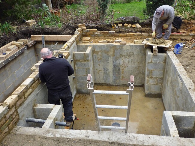Bạn hãy đem đặt sắt thép để tạo khung vững chắc cho đáy hồ. Sắt thép sử dụng có thể tương tự như sử dụng xây dựng nhà cửa. Một khi sử dụng lớp sắt cố định thì xi măng sẽ bám chắc chắn hơn. Tình trạng bị xuống cấp hồ sẽ được giảm thiểu. Sau khi bố trí xong bạn đổ thêm một lớp bê tông lên toàn bộ phần lòng đáy. Và bạn cũng tráng luôn xung quanh viền hồ nhé. Lớp xi măng lúc đổ xuống bạn nhớ chát và đánh bóng tỉ mỉ, cẩn thận để mặt sàn mịn màng, đều bằng nhau. Nếu chi phí bạn dư dả có thể sử dụng công nghệ cao để giúp bề mặt kín hơn.