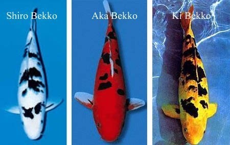 Chũng giống như cá koi Utsuri thì cá koi Benkko cũng có những màu đỏ, trắng, và vàng với 3 loại như sau: Shiro Bekko, Aka Bekko, Ki Bekko. Tuy nhiên, điểm khác biệt của cá Bekko là đốm đen trên thân nhỏ hơn rất nhiều so với đốm đen trên cơ thể cá Utsuri.
