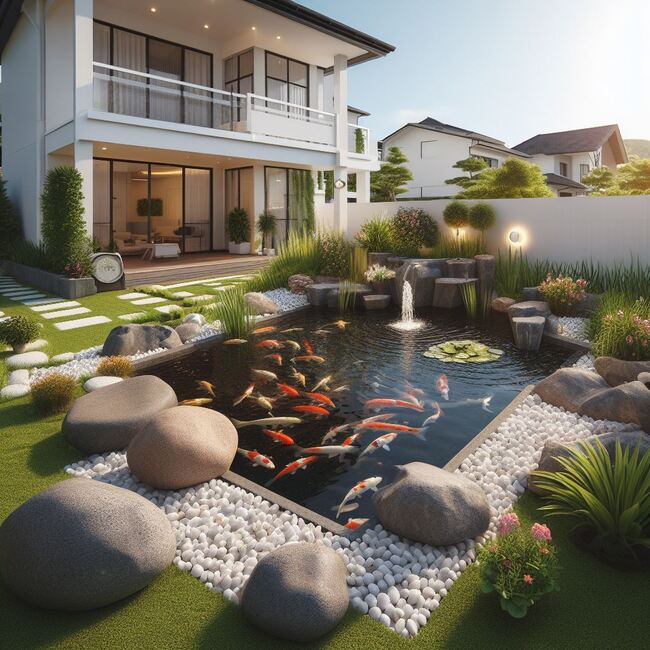 Tóm lại, thiết kế hồ Koi ngoài trời trong sân vườn biệt thự không chỉ là việc xây dựng một không gian để chứa cá, mà còn là một nghệ thuật tinh tế. Từ sự kết hợp giữa hiện đại và truyền thống đến sự giao thoa với các yếu tố tự nhiên khác, mỗi hồ Koi trở thành một tác phẩm độc đáo, tạo nên một không gian sống động và ấn tượng cho gia chủ.
