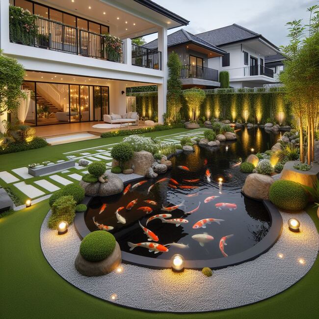 Trong quá trình cải tạo, trang trí hồ cũng đóng một vai trò quan trọng. Sự sáng tạo trong việc chọn cây cỏ, đá trang trí và các phụ kiện khác không chỉ làm đẹp hồ mà còn tạo ra môi trường sống phong phú và đa dạng. Sử dụng ánh sáng LED và đèn lồng có thể tạo ra không gian lãng mạn và tạo điểm nhấn cho hồ Koi vào buổi tối.