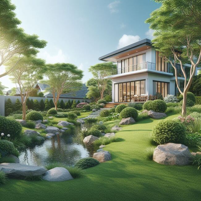 Phong cách sân vườn xanh đặt sự tập trung chính vào việc tạo ra không gian xanh mát và gần gũi với thiên nhiên. Nó thường bao gồm việc sử dụng nhiều loại cây cỏ và cây cối, từ cây lá xanh rậm rạp đến cây có hoa và cây lưỡi hổ. Cây cỏ không chỉ tạo ra cảm giác yên bình mà còn giúp làm sạch không khí và cải thiện chất lượng môi trường. Các hồ nước, bể bơi và các yếu tố nước khác thường được tích hợp để tạo ra không gian mát mẻ và thư giãn.
