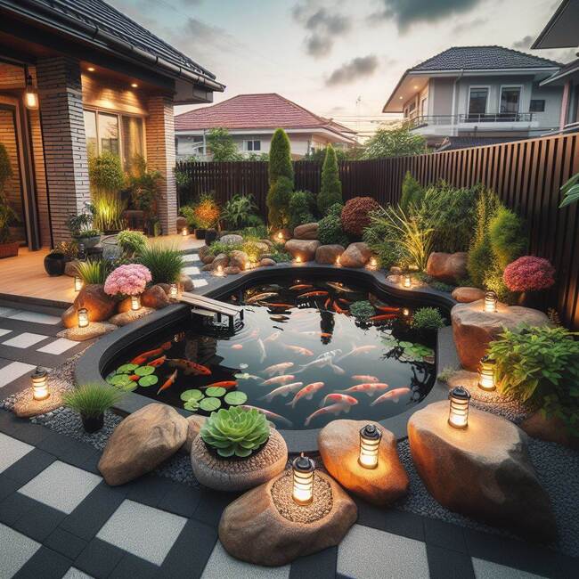 Khi thiết kế hồ Koi, không chỉ là việc sắp xếp các yếu tố một cách hợp lý mà còn là quá trình tìm kiếm sự đồng thuận giữa nghệ thuật và tự nhiên. Sự sáng tạo trong việc kết hợp màu sắc, hình dạng, và kết cấu của nước, đá, và cây cỏ tạo nên một không gian sống động và độc đáo. Điều này không chỉ làm cho hồ Koi trở thành điểm nhấn của khu vườn mà còn là nguồn cảm hứng không ngừng cho những người yêu thiết kế và nghệ thuật.