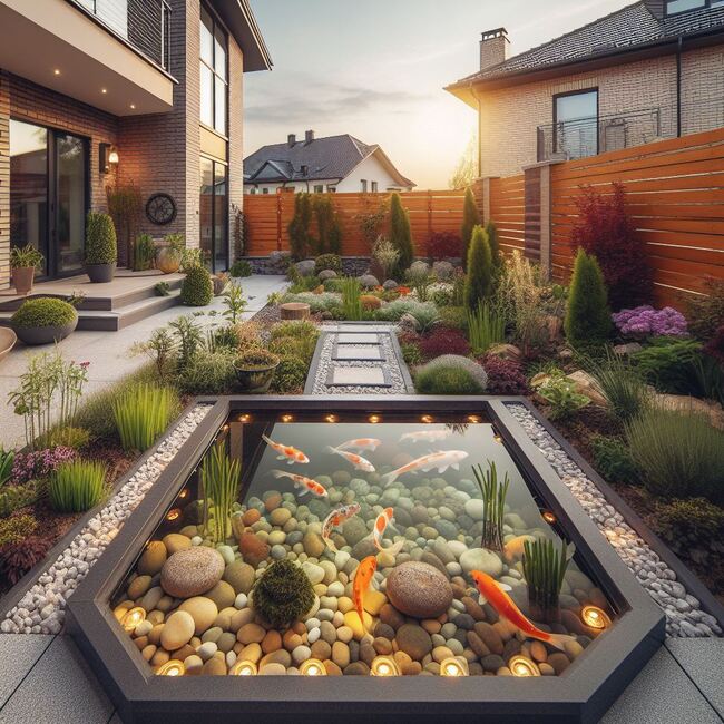 Hồ Koi không chỉ là một bức tranh tĩnh lặng, mà còn là nơi mà âm nhạc của nước tạo ra bản giao hưởng dễ thương. Thiết kế hệ thống nguồn nước thông minh, với các thác nước nhỏ và đèn led dưới nước, tạo ra những hiệu ứng ánh sáng mềm mại vào buổi tối. Âm thanh của nước rơi nhẹ nhàng tạo nên một không gian lý tưởng cho những khoảnh khắc thư giãn và trầm lặng, làm cho không gian trở nên ấm áp và gần gũi với tự nhiên.