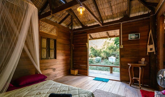 Những homestay nhà sàn cũng có thể được đặt tại những vị trí cao có view nhìn thoáng đãng toàn cảnh núi đồi trùng trùng điệp hùng vĩ, khiến du khách có được cảm giác hòa mình với núi rừng.