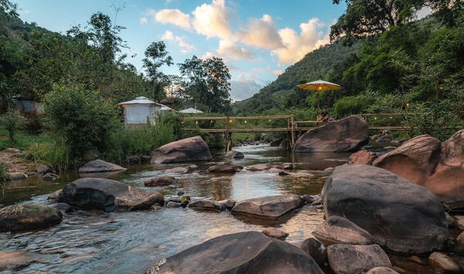 Những dòng suối chảy róc rách qua những viên đá, làn nước mát lành của núi rừng cũng sẽ làm hài lòng du khách.
