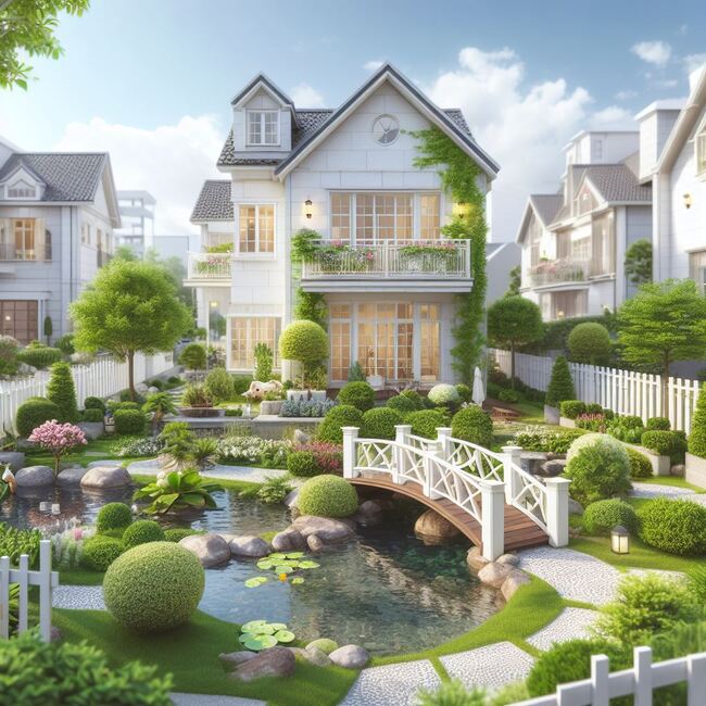 Bắt đầu từ Châu Á, thiết kế sân vườn Nhật Bản là một biểu tượng của sự đơn giản, tinh tế và sự hài hòa với thiên nhiên. Các khu vườn Nhật thường có đường đi rải cát trắng, kết hợp với cầu kính nước và các khu vực cây cỏ cắt tỉa tinh tế. Các cây cảnh như bonsai và đá kiến tạo được sắp xếp theo nguyên tắc "Wabi-sabi," tôn vinh sự không hoàn hảo và những điều đơn giản.