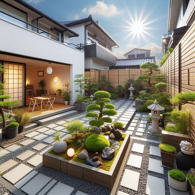 Một trong những yếu tố quan trọng nhất trong bố cục sân vườn kiểu Nhật hiện đại là việc tận dụng mỗi mét vuông không gian một cách thông minh. Sân vườn thường được chia thành các khu vực nhỏ, mỗi khu vực đều có mục đích và cảm nhận riêng. Đường lối và lối đi được xây dựng một cách cân nhắc, tạo ra những đường dẫn uốn lượn, tạo điểm nhấn cho sân vườn và tạo nên một không gian sống độc đáo.