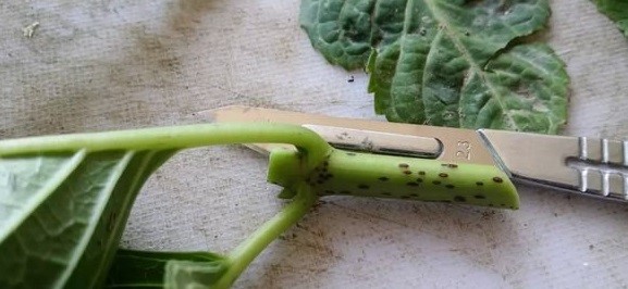 Bước tư: cắt bỏ khoảng 1/3 hoặc một nửa lá, điều này tùy thuộc vào kích thước của lá.