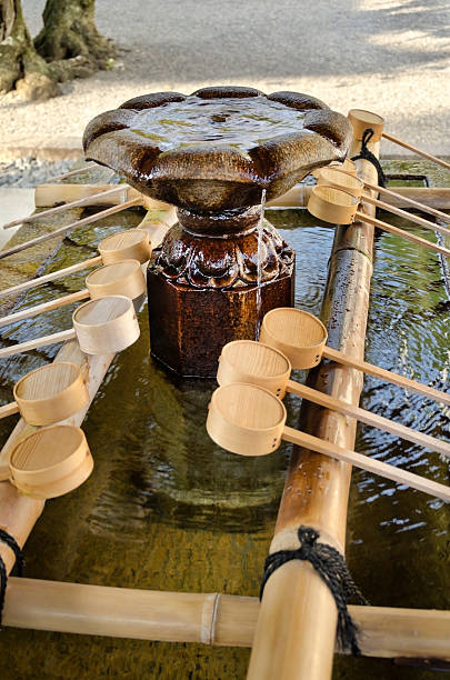 Thời xưa nguồn nước trong Tsukubai được lấy từ các suối trên núi. Hiện nay, thì nước trong tsukubai là nguồn nước nhân tạo được lấy từ các máy bơm công suất nhỏ lấp ẩn bên dưới ống tre đưa nước lên. Vào mùa hè thì khối lượng nước lại cao hơn do tỷ lệ bay hơi cao.