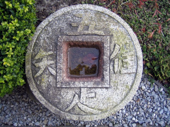 Shizenseki Chouzubachi có hình dạng giống với Tuskubai được tìm thấy trong khu vườn đền Ryoan-ji ở Kyõto. Hình dạng dựa trên một đồng tiền cổ của Trung Quốc. Vòng tròn đại diện cho trời (dương), bị xuyên qua một lỗ vuông biểu thị đất (âm). Shizenseki Chouzubachi này được cho rằng là của Mitsukuni Tokugawa (1628-1700) - một người nổi tiếng và có ảnh hưởng trong triều đại Edo.