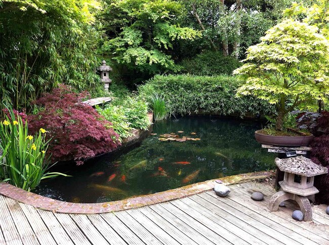 Hồ cá Koi là hình ảnh quen thuộc dễ bắt gặp ở sân vườn phong cách Nhật Bản