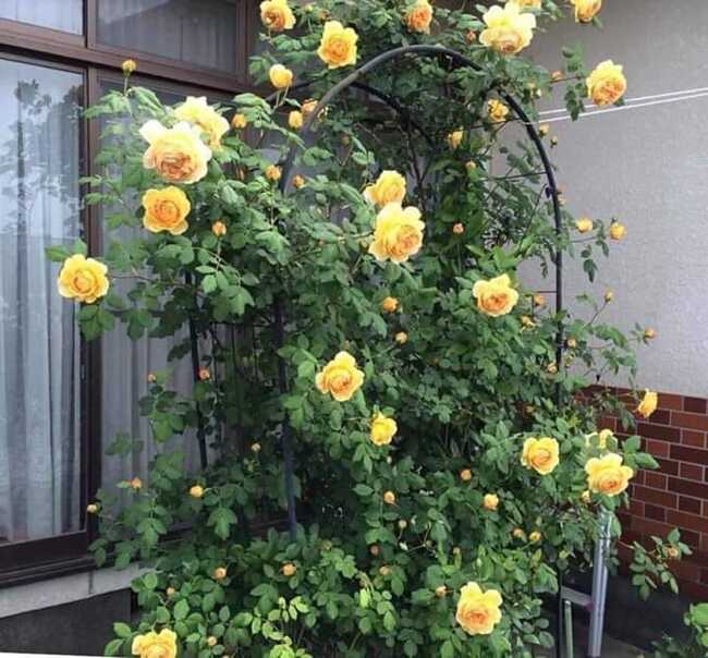 Thân của hoa hồng leo Golden Celebration khá mềm mại nên bạn có thể dễ dàng uốn cong nhẹ nhàng theo khung dạng vòm để tạo khung vòm trang trí trước cổng nhà, hoặc một góc sân vườn.