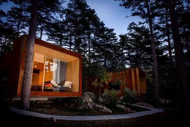 Điểm nhấn của khu glamping này là những căn nhà giữa rừng cây là phòng xông hơi khô và tầm nhìn ra một thung lũng tuyệt đẹp. Thiết kế không gian mở với những tấm kính lớn giúp cho du khách luôn có cảm giác sống giữa thiên nhiên. Vùng đất này có những vườn nho mênh mông, nơi sản xuất ra những rượu vang hảo hạng mà du khách không nên bỏ qua. Ngay gần khu nghỉ cũng có những nhà hàng với nhiều món ăn độc đáo xuất xứ địa phương.