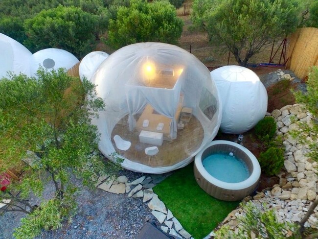 Những căn lều có hình dạng "bong bóng" mang lại những trải nghiệm ngoại hạng, du khách ngủ dưới trời sao và tận hưởng cuộc sống phóng khoáng. Mỗi chiếc lều đều có khu sinh hoạt riêng ngoài trời với ghế tắm nắng và bồn nước nóng. Gần đó là thành phố cảng Thessaloniki lớn thứ hai Hy Lạp, với vô vàn điểm đến thú vị và sôi động.