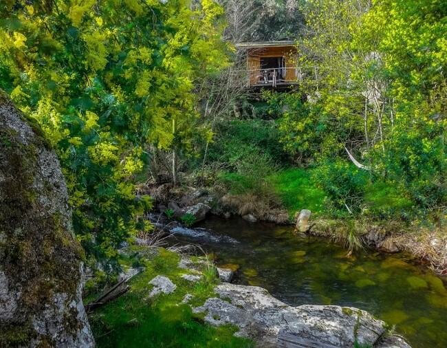 Nằm cheo leo trên những khối đá, mỗi cabin bằng gỗ tại đây đều có tầm nhìn hướng ra con sông Sever và vùng thông quê Alentejo. Không gian bên trong tuy đơn giản nhưng vô cùng ấm cúng và lãng mạn, với giường, ghế, bàn tủ chỉ được chế tác thô sơ từ gỗ. Những chiếc võng được bố trí bên ngoài, giúp cho du khách yên tĩnh và thưởng lãm khung cảnh thiên nhiên xanh mát bao quanh.