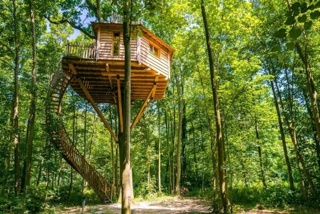 Treo ở độ cao hơn 20m và kết nối với mặt đất bằng những cầu thang xoắn ốc, ngôi nhà trên cây này là địa điểm tuyệt vời cho những chuyến “đi trốn”. Nằm trong khu rừng hẻo lánh, mỗi căn nhà là một nơi nghỉ dưỡng hoàn toàn biệt lập, phù hợp cho những chuyến trăng mật hay hẹn hò lãng mạn. Dù bề ngoài thô mộc nhưng bên trong vẫn đầy đủ các tiện nghi như phòng tắm, bồn gỗ, ghế sưởi nắng…