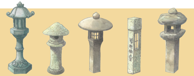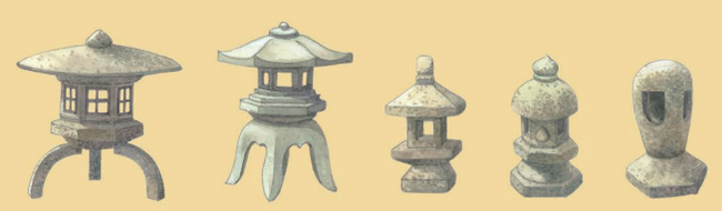 Một số loại đèn đá được dùng trang trí trong vườn Nhật Bản