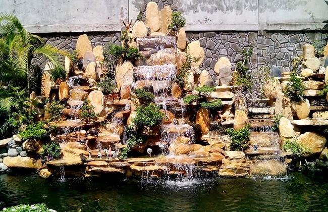– Tiểu cảnh non bộ có thác nước hoặc trang trí cây xanh thì cần chú ý kết hợp với tỉ lệ cân đối. Ngọn cây không được vượt quá đỉnh của non bộ và thác nước cần được tuần hoàn nước sạch liên tục.