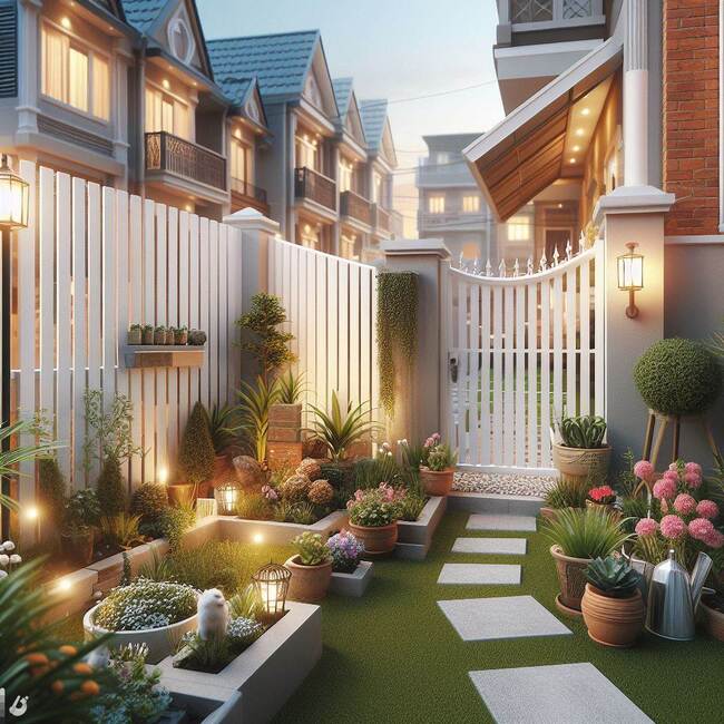 Đối diện với diện tích hạn chế, việc sử dụng đèn chiếu sáng được chú ý đặc biệt. Ánh sáng không chỉ mở rộng không gian và tạo cảm giác thoải mái vào buổi tối mà còn làm tăng tính thẩm mỹ của khu vườn. Đèn treo, đèn bậc thang hay đèn nổi trần được bố trí một cách sáng tạo có thể tạo nên các điểm nhấn chiếu sáng, làm cho sân vườn trở nên sống động và thoải mái vào ban đêm.