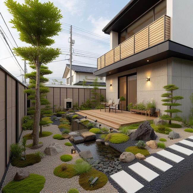 Thiết kế sân vườn Nhật Bản cho căn hộ đô thị đòi hỏi sự sáng tạo và tối giản để tận dụng mọi mét vuông có sẵn. Một trong những yếu tố quan trọng là việc chọn lựa cây cỏ và cây cảnh có kích thước nhỏ, như bonsai và cây lưỡi hổ, giúp tạo nên một không gian xanh mát mà không làm chật chội. Các loại cây nhỏ này không chỉ đẹp mắt mà còn tạo cảm giác rộng lớn hơn cho không gian nhỏ.