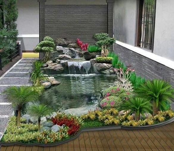 6. Sự Kết Hợp Với Nước Chảy: Hồ Koi thường được kết hợp với các hệ thống nước chảy phức tạp trong thiết kế phong cách Châu Âu. Nước chảy từ các bồn nước hoặc các hệ thống suối tạo ra hiệu ứng thác nước và âm thanh tĩnh lặng, đồng thời tạo điểm tâm tư tưởng cho không gian xung quanh hồ Koi.