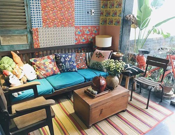 Homestay phong cách vintage & retro thường tạo cảm giác hoài cổ, sang trọng và lãng mạn. Từ nguyên liệu xây dựng, vật liệu sử dụng để bố trí đều được lựa chọn phản ánh xu hướng, cá tính, là những giá trị đẹp đẽ nhất của những thập niên trước. Vật liệu đặc trưng trong thiết kế vintage&retro là: gỗ và thổ cẩm.