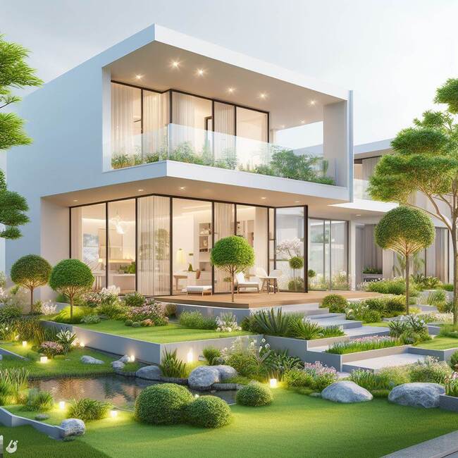 Một trong những xu hướng nổi bật hiện nay là "Sân vườn Đô thị Hiện đại," một sự kết hợp tinh tế giữa kiến trúc hiện đại và không gian xanh. Các sân vườn được thiết kế với đường nét tối giản, sử dụng vật liệu như gạch, kim loại, và gỗ để tạo ra không gian sang trọng và hiện đại. Đèn LED và các hệ thống tưới tự động thường được tích hợp để tối ưu hóa tính tiện ích và tiện lợi cho cư dân đô thị. Các khu vực này thường kết hợp giữa các loại cây cỏ, hoa lá màu sắc và đôi khi là các đối tượng nghệ thuật để tạo nên không gian sống xanh tinh tế, đẳng cấp.