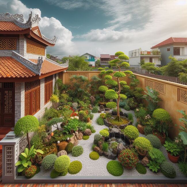 Điểm xuất phát quan trọng trong việc thiết kế sân vườn theo phong cách cổ Việt Nam là sự tôn trọng và duy trì giá trị truyền thống. Các yếu tố như kiến trúc độc đáo của ngôi nhà cổ, sử dụng các vật liệu truyền thống như gạch men, gỗ quý, và đá xanh lá cây sẽ tạo nên nền móng cho không gian xung quanh. Việc chọn lựa cây cỏ và hoa lá cũng phải tuân thủ theo sự tự nhiên và mộc mạc, như các loại cây truyền thống Việt Nam như mai và cúc.