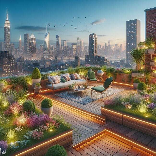 Một trong những yếu tố quan trọng nhất khi thiết kế sân vườn trên tầng thượng là sự chọn lựa đúng vật liệu và cây cỏ phù hợp với môi trường nơi đó. Đối với nền nhà trên tầng thượng, việc chọn lựa vật liệu nhẹ nhàng và không gây áp lực cho kết cấu là quan trọng. Cỏ nhân tạo được ưa chuộng vì tính linh hoạt và dễ bảo quản, đồng thời giúp giảm áp lực trọng lực lên kết cấu nhà.