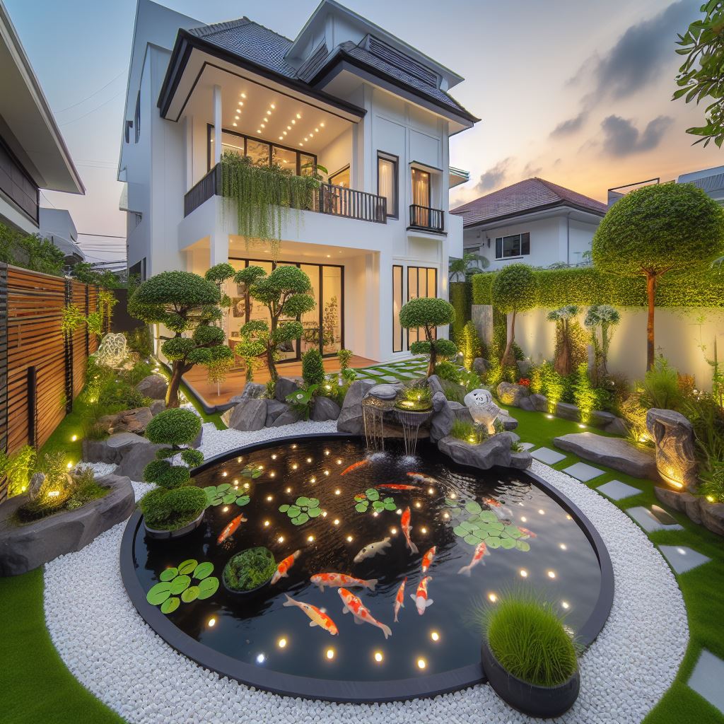 Nghệ thuật tương phản: Sử dụng đối lập màu sắc và hình thức trong sân vườn và hồ Koi
