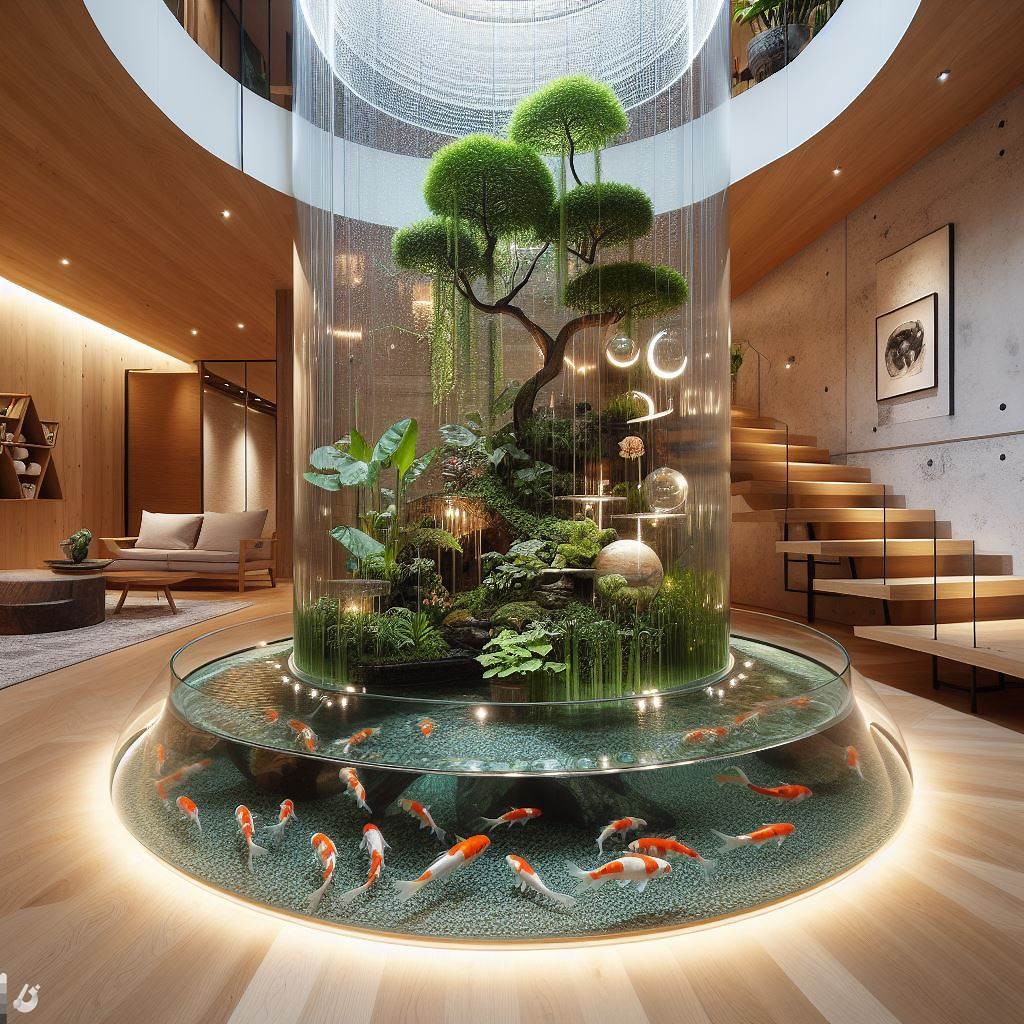 Thiết kế hồ Koi kính trong nhà là một ý tưởng tinh tế, kết hợp giữa vẻ đẹp tự nhiên của cá Koi và không gian sống hiện đại trong ngôi nhà. Đây không chỉ là một biểu tượng của sự sang trọng, mà còn là một cách để tận hưởng vẻ đẹp của thiên nhiên quanh năm, mà không bị ảnh hưởng bởi điều kiện thời tiết hay môi trường bên ngoài.