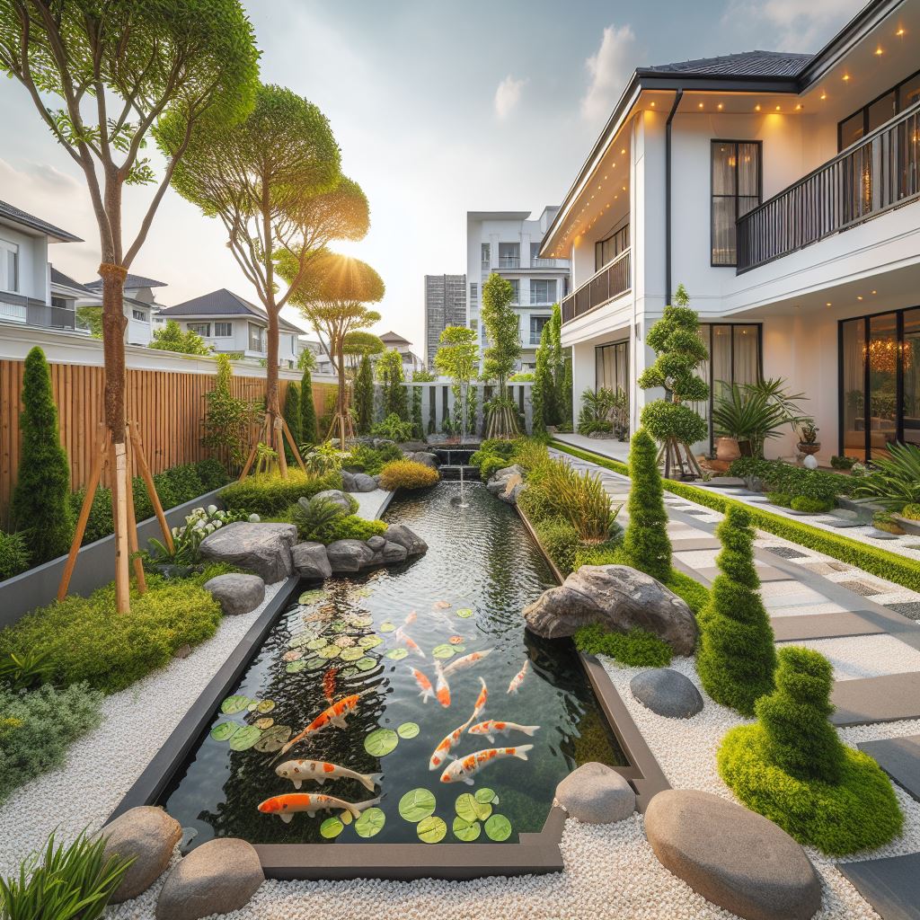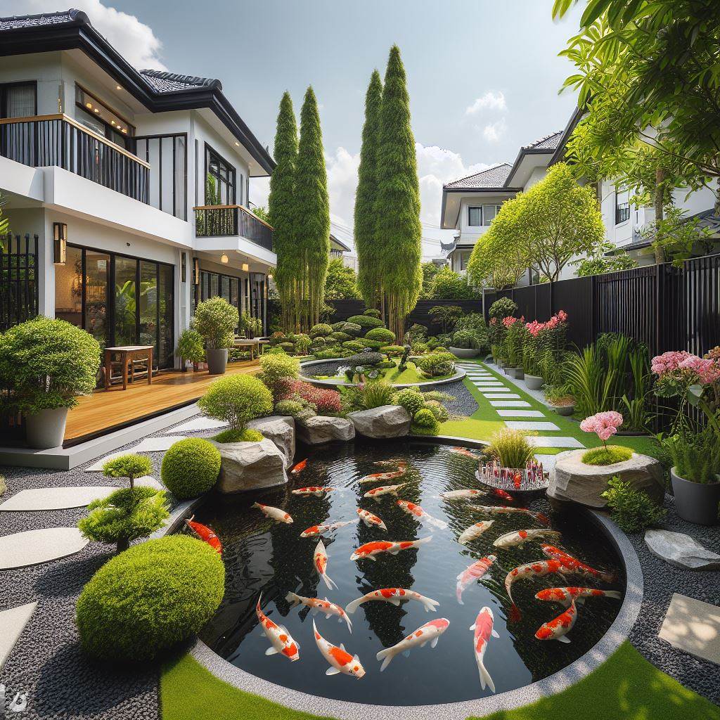 Việc thiết kế hồ Koi sau nhà không chỉ mang lại vẻ đẹp tinh tế cho không gian sống mà còn tạo ra một khu vực thư giãn và nghỉ ngơi tuyệt vời. Hồ Koi không chỉ là nơi nuôi cá mà còn là điểm nhấn độc đáo, làm tăng tính estetik và tâm huyết cho khu vực ngoại thất của ngôi nhà.