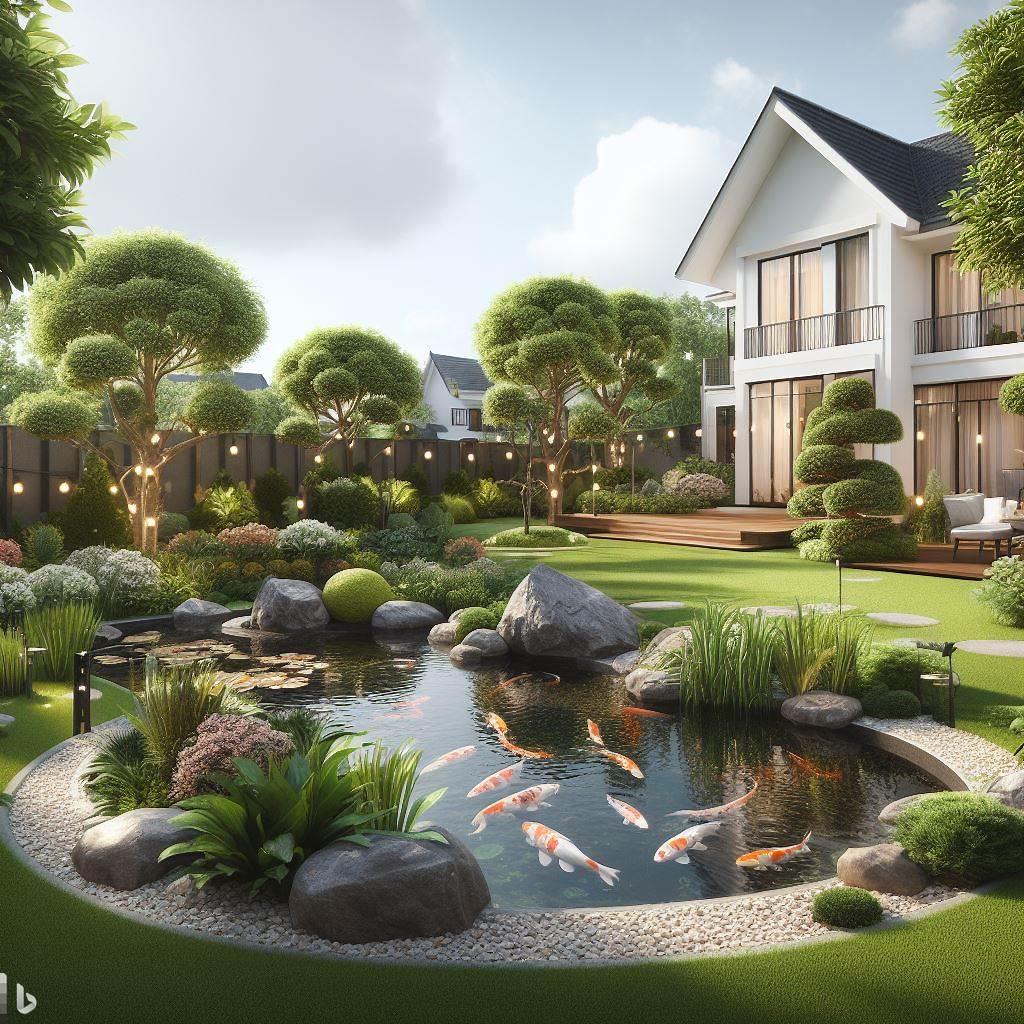 Thiết kế Sân Vườn Biệt Thự với Hồ Koi: Hòa Quyện Tự Nhiên và Sự Tĩnh Lặng Sân vườn biệt thự với hồ Koi là một biểu tượng của sự tinh tế và thẩm mỹ, nơi thiên nhiên và kiến trúc gặp gỡ, tạo nên một không gian sống tĩnh lặng và độc đáo. Việc thiết kế một sân vườn với hồ Koi không chỉ đòi hỏi kiến thức về cảnh quan mà còn đòi hỏi tình yêu đối với thiên nhiên và sự kiên nhẫn. Trong đoạn văn này, chúng ta sẽ khám phá một số yếu tố quan trọng để tạo ra một sân vườn biệt thự với hồ Koi đẹp đẽ và ấn tượng.