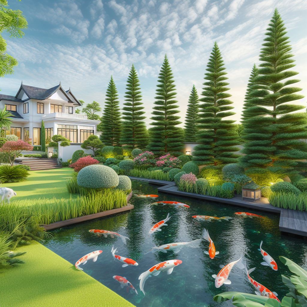 Thiết kế sân vườn hiện đại kết hợp với hồ Koi là một biểu tượng của sự sáng tạo và đổi mới, khi chúng ta hòa mình vào một thế giới vẻ đẹp và tĩnh lặng, mà đồng thời mang sắc màu hiện đại và sự tương tác hài hòa giữa con người và thiên nhiên. Hồ Koi, với các chú cá Koi nhiều màu sắc và cảnh quan sân vườn thiết kế hiện đại, tạo ra một khung cảnh gây ấn tượng và thú vị.