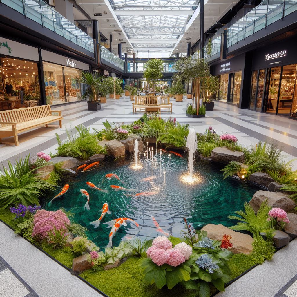 Vẻ Đẹp Độc Đáo của Hồ Koi trong Trung Tâm Thương Mại: Sự Kết Hợp Tinh Tế Giữa Thiên Nhiên và Thiết Kế Trung tâm thương mại thường là những không gian sầm uất, nơi mọi người tìm kiếm sự mua sắm và giải trí. Tuy nhiên, trong những năm gần đây, nhiều trung tâm thương mại trên khắp thế giới đã đưa thiết kế hồ Koi vào không gian của họ, biến nơi đây thành một nơi để tránh xa khỏi cuộc sống hối hả và tận hưởng vẻ đẹp độc đáo của cá Koi. Thiết kế hồ Koi trong trung tâm thương mại không chỉ tạo ra một môi trường sống cho cá Koi mà còn mang lại sự tĩnh lặng, thư giãn và sự kết nối với thiên nhiên.