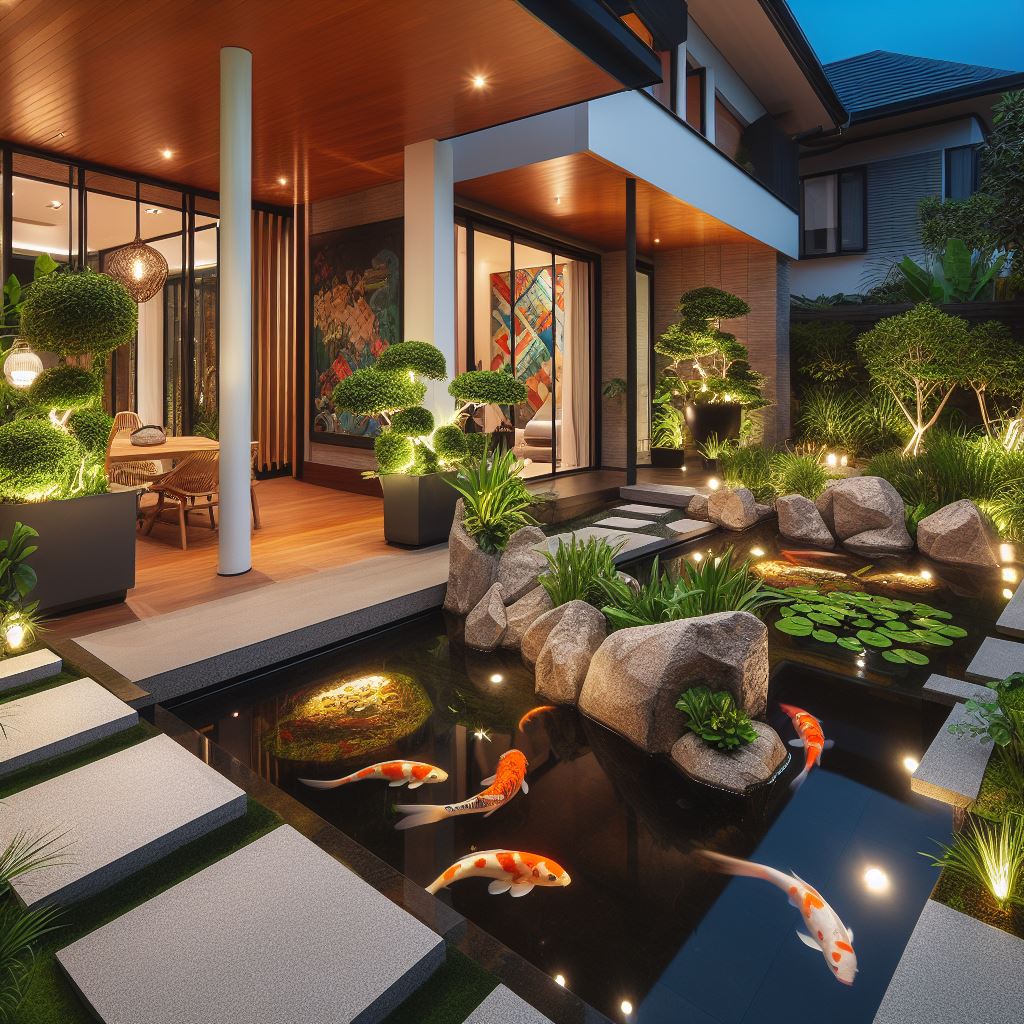 Thiết Kế Hồ Koi Trong Nhà Vườn: Sự Lãng Mạn Của Nước Và Hoa Lá Nhà vườn là nơi tạo dựng sự kết nối đặc biệt giữa con người và thiên nhiên, và hồ Koi trong nhà vườn không chỉ tạo điểm nhấn độc đáo mà còn là một biểu tượng của sự tĩnh lặng và sự hài hòa. Thiết kế hồ Koi trong nhà vườn là một quá trình tinh tế, nơi mà nghệ thuật và thiên nhiên gặp nhau để tạo ra một môi trường sống động và đầy tạo hứng.