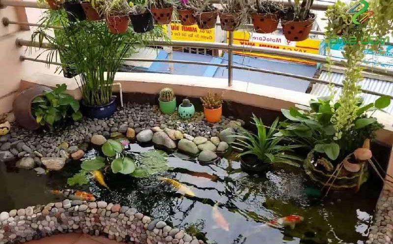 Thiết kế hồ Koi kết hợp cây cảnh trên ban công nhà