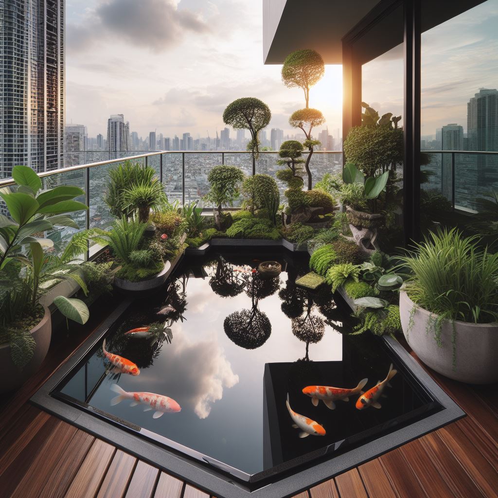 Vẻ đẹp tiện ích của hồ Koi ban công