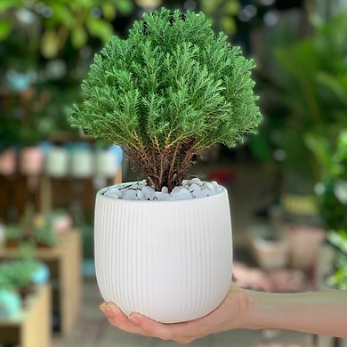 Cây Tùng Bồng Lai để bàn mang ý nghĩa phong thủy nhiều tới sức khỏe, tài lộc, thịnh vượng, giữ tiền và giữ của cho người sở hữu. Cây Tùng Bồng Lai nhỏ phù hợp để bàn, kệ sách, trang trí quán cà phê.