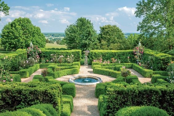 - Đài phun nước, cây cảnh cắt tỉa tạo hình khối và ít có những cây bóng mát có tán chính là nét nổi bật của vườn cảnh phương Tây.