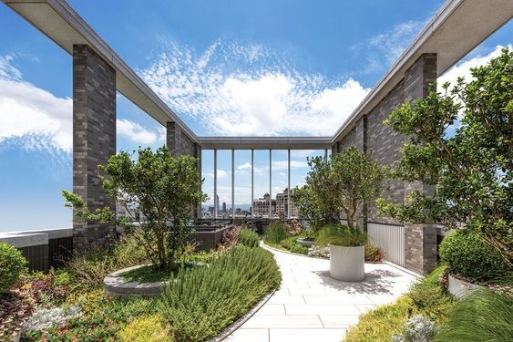 Không gian sân vườn trên cao với đầy nắng và gió mát bên cạnh những tán cây đem đến không